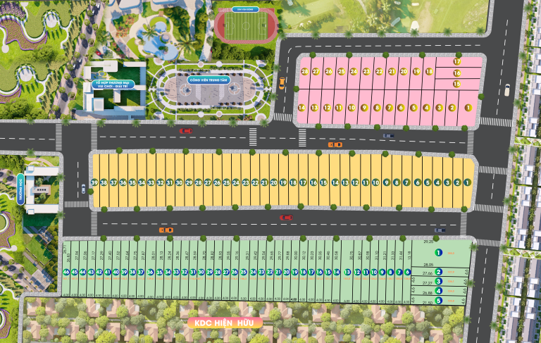 Nằm tại khu vực Trung tâm nên Quỹ đất còn lại rất hạn chế & hiếm hoi chỉ Block cuối cùng với 46 nền đất & đường giao thông nội khu rộng 12m, được đầu tư hạ tầng khang trang, cảnh quang xanh mát.